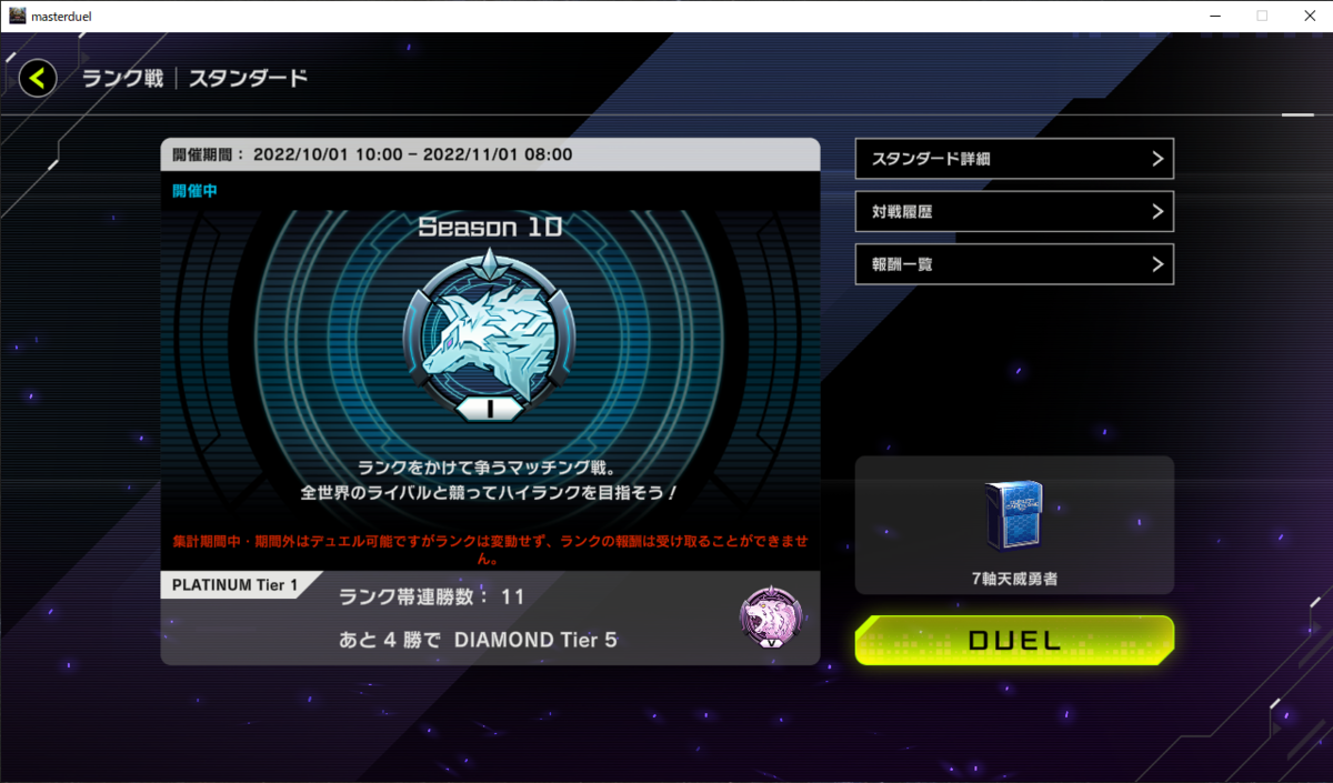 月初プラチナ帯でもある程度は勝てるので月末ダイヤ1ぐらいなら行けそう